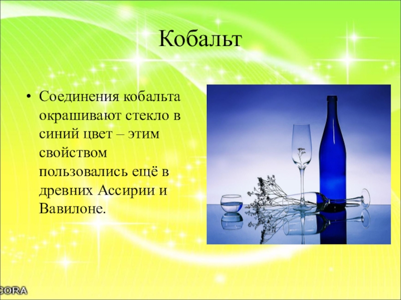Соединения кобальта окрашивают стекло в синий цвет – этим свойством пользовались