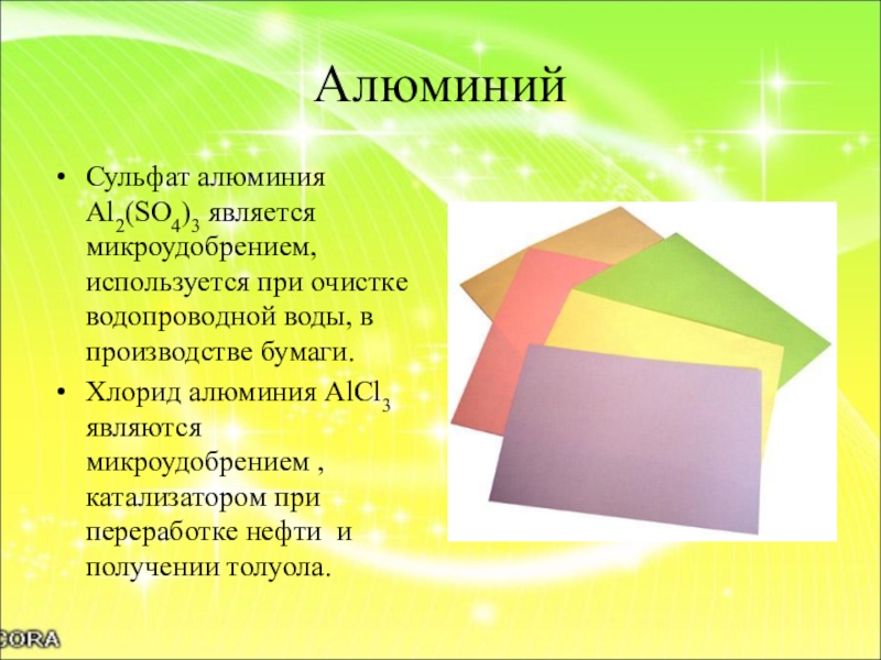 Сульфат алюминия Al2(SO4)3 является микроудобрением, используется при очистке водопроводной воды, в