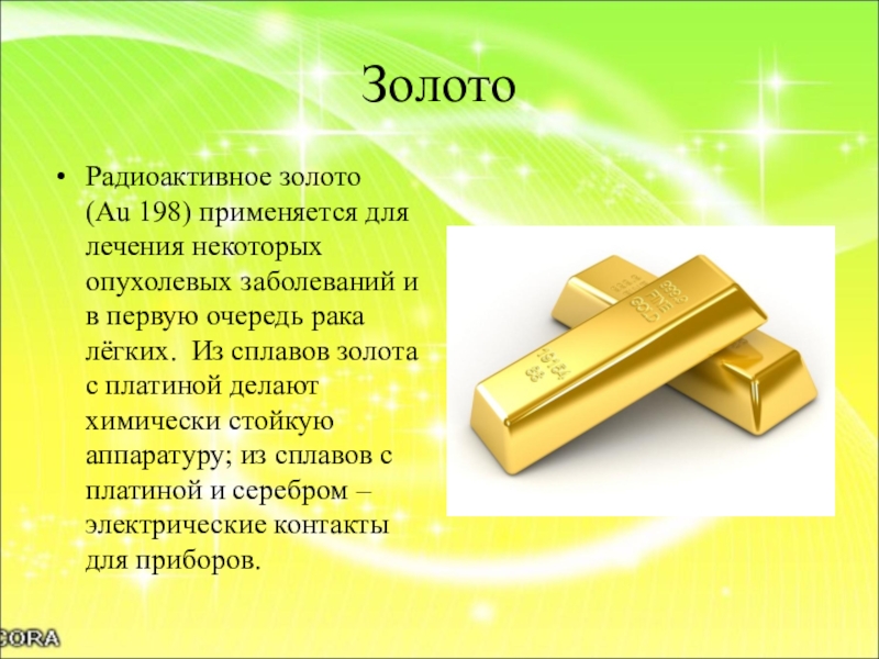 Радиоактивное золото (Аu 198) применяется для лечения некоторых опухолевых заболеваний