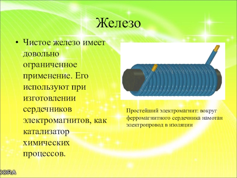 Чистое железо имеет довольно ограниченное применение. Его используют при изготовлении сердечников