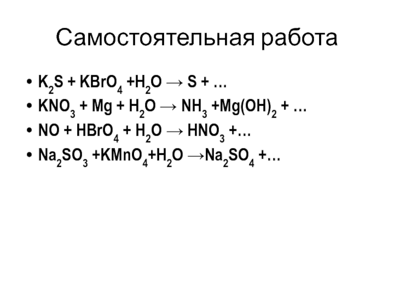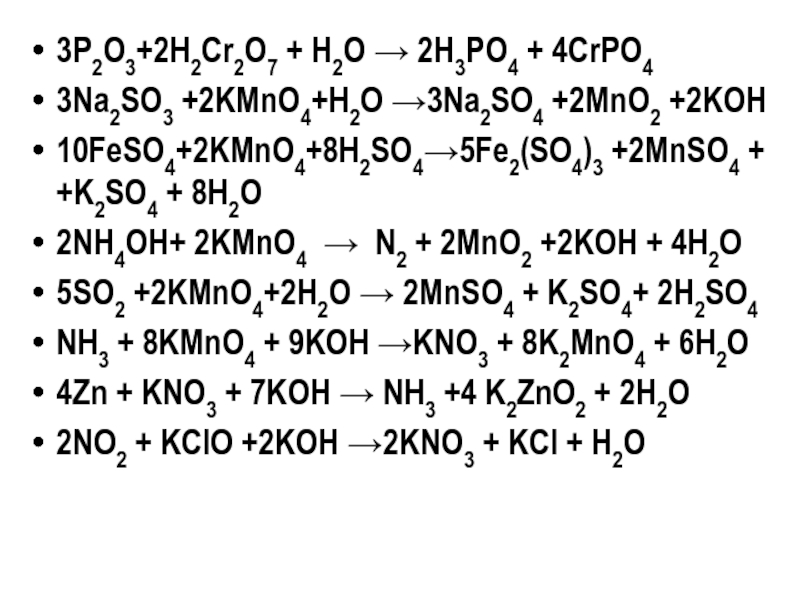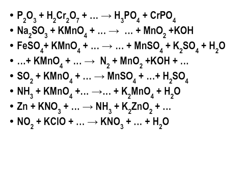 Слайд 26MnSO4 + KClO3 +KOH → K2MnO4 + ….