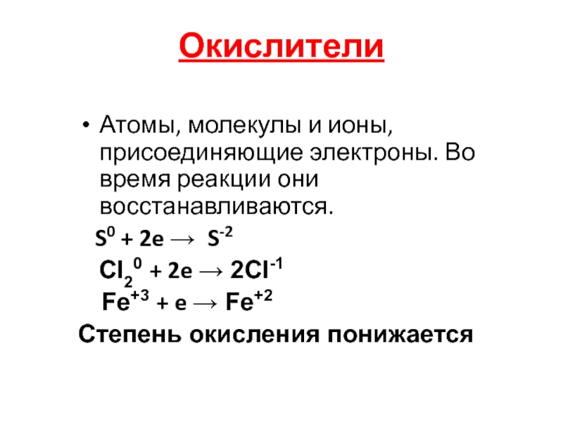 Атомы, молекулы и ионы, присоединяющие электроны. Во время реакции они восстанавливаются.