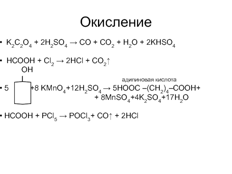 5 +8 KMnO4+12H2SO4 → 5HООС –(CH2)4–СООH+