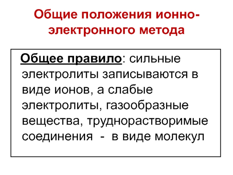 виде ионов, а слабые электролиты, газообразные вещества, труднорастворимые соединения - в виде молекул