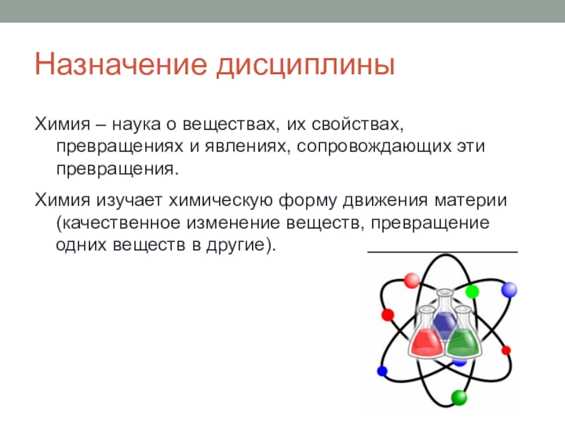 Химия изучает химическую форму движения материи (качественное изменение веществ, превращение одних веществ в другие).