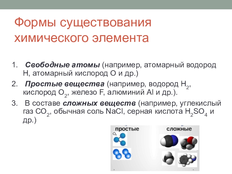 Простые вещества (например, водород Н2, кислород О2, железо F, алюминий Al и др.).
