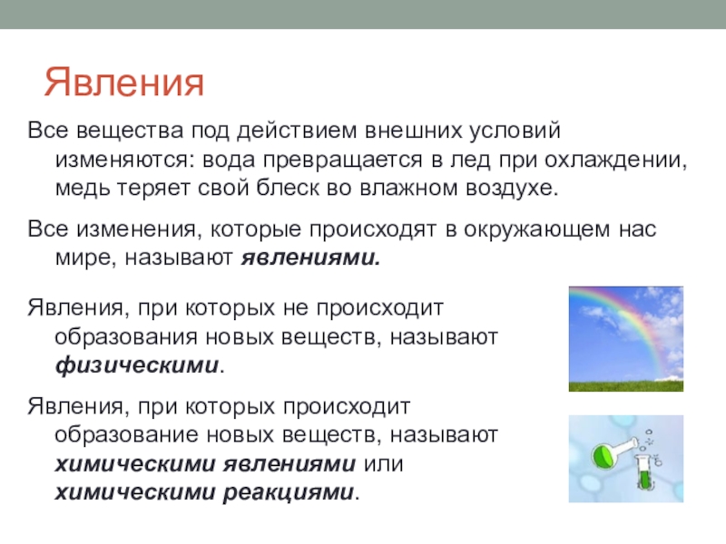 Все изменения, которые происходят в окружающем нас мире, называют явлениями.