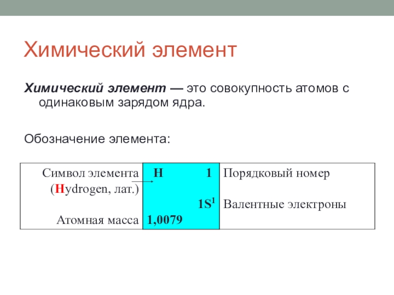 Химический элемент — это совокупность атомов с одинаковым зарядом ядра.