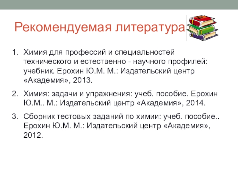 Химия: задачи и упражнения: учеб. пособие. Ерохин Ю.М.. М.: Издательский центр «Академия», 2014.