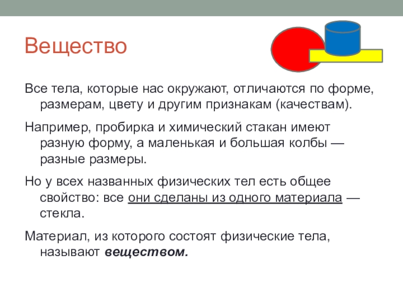 Все тела, которые нас окружают, отличаются по форме, размерам, цвету и