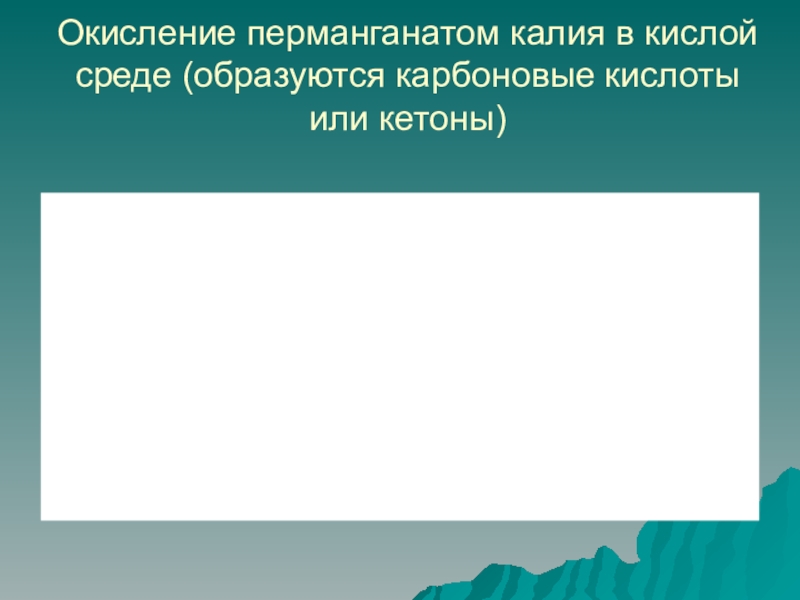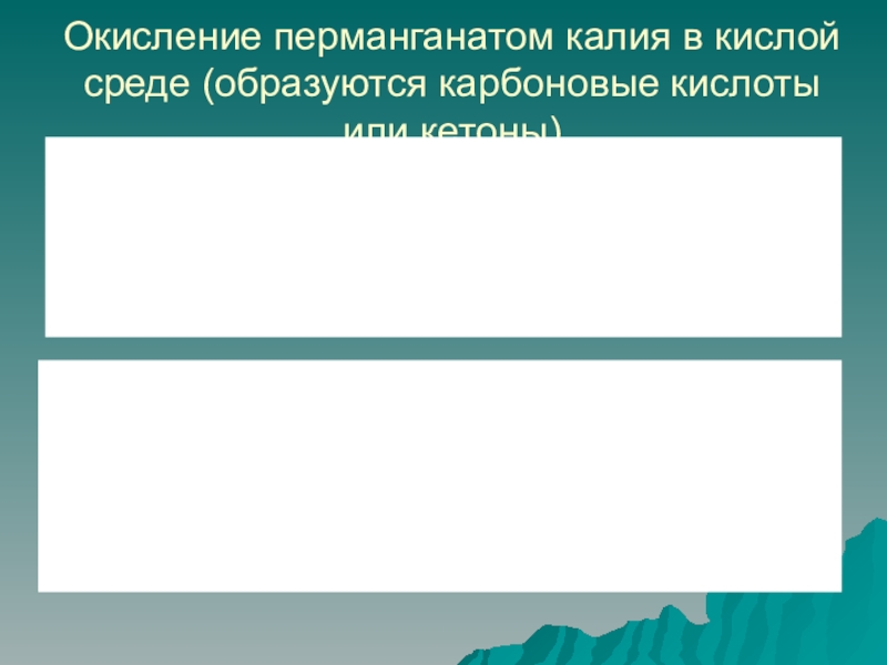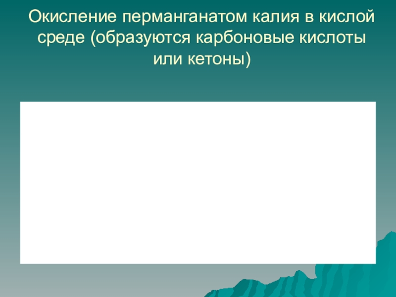 Слайд 18Окисление перманганатом калия в кислой среде (образуются карбоновые кислоты или кетоны)