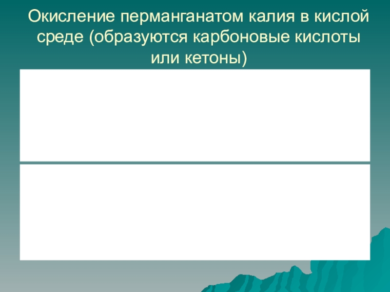 Слайд 16Окисление перманганатом калия в кислой среде (образуются карбоновые кислоты или кетоны)