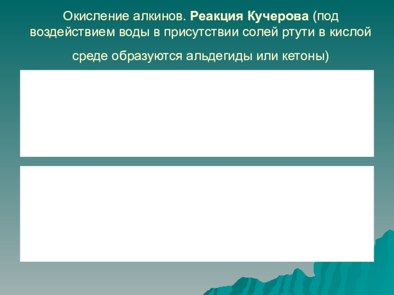 Слайд 21Окисление алкинов. Реакция Кучерова (под воздействием воды в присутствии солей ртути