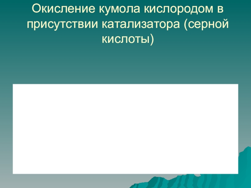 Слайд 25Окисление кумола кислородом в присутствии катализатора (серной кислоты)