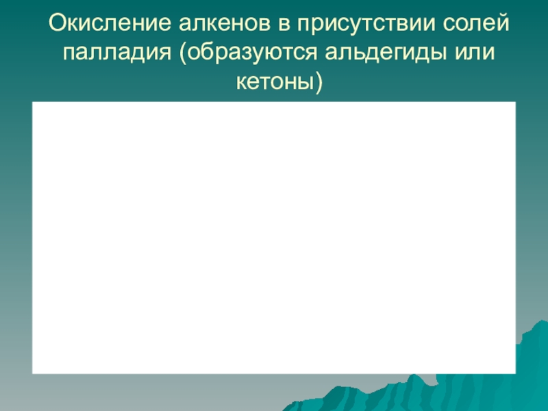 Слайд 20Окисление алкенов в присутствии солей палладия (образуются альдегиды или кетоны)