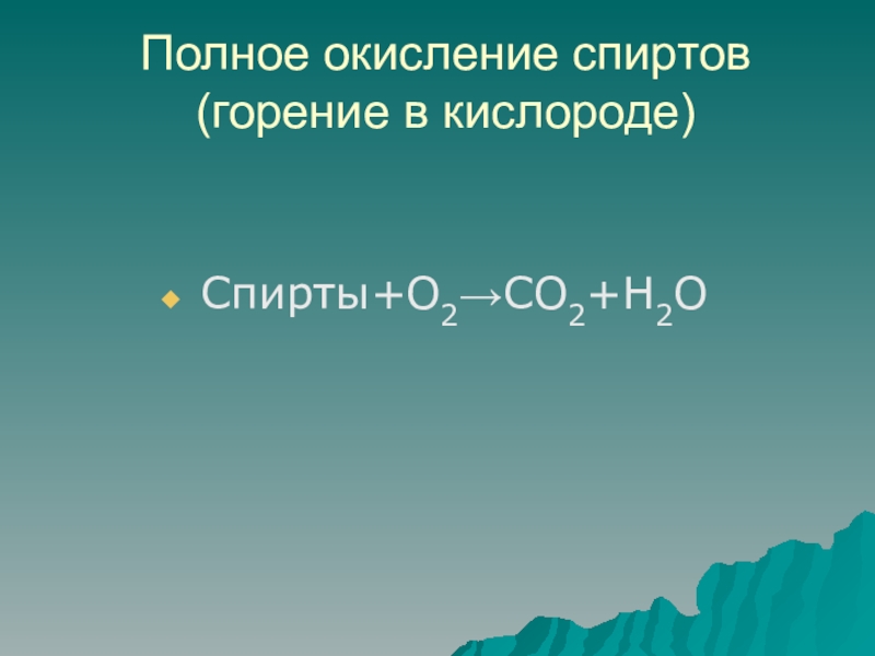 Слайд 3Полное окисление спиртов (горение в кислороде)