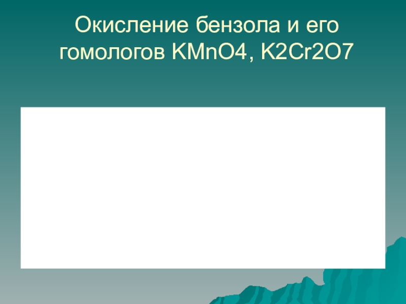 Слайд 24Окисление бензола и его гомологов KMnO4, K2Cr2O7