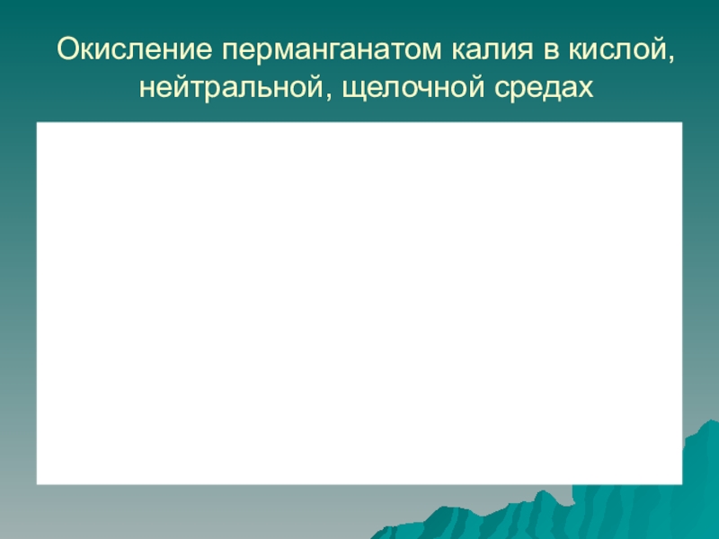 Слайд 10Окисление перманганатом калия в кислой, нейтральной, щелочной средах