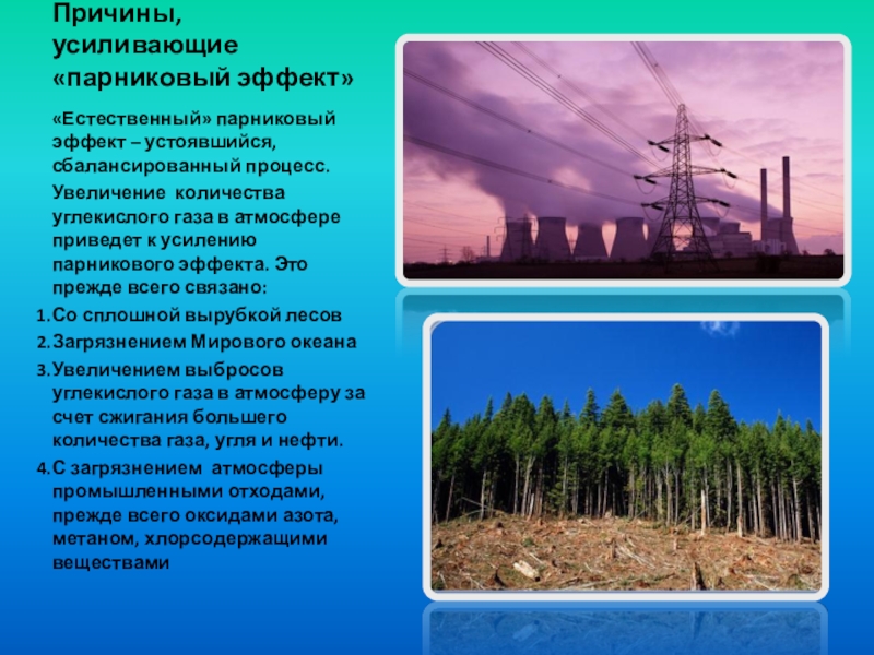 Слайд 3Причины, усиливающие «парниковый эффект»