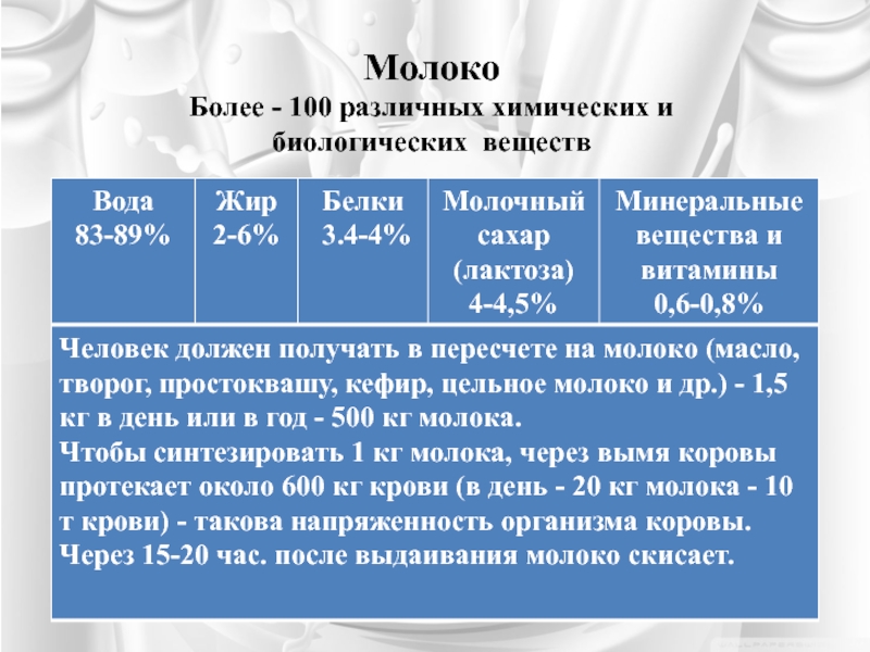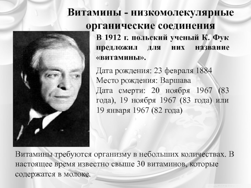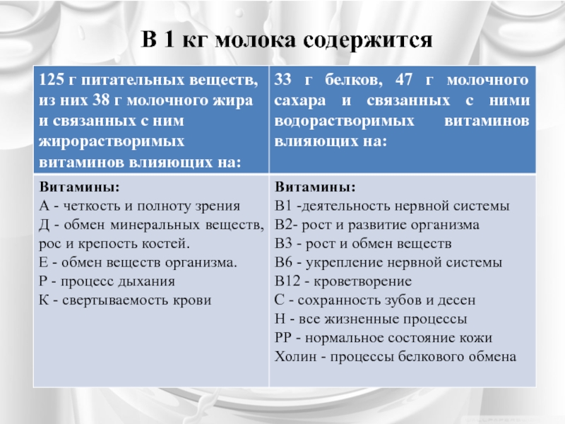 Витамины требуются организму в небольших количествах. В настоящее время известно свыше 30 витаминов, которые содержатся в молоке.