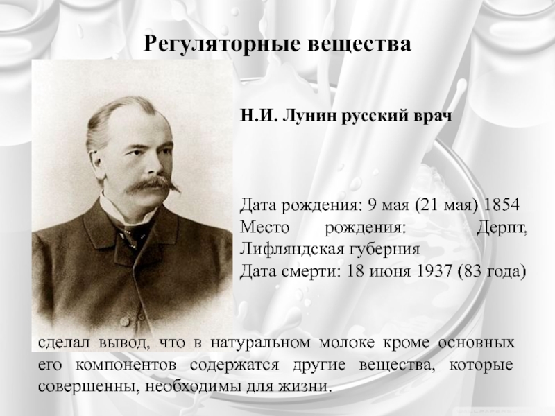 сделал вывод, что в натуральном молоке кроме основных его компонентов содержатся другие вещества, которые совершенны, необходимы для жизни.