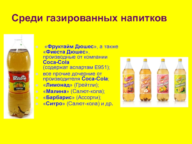 Продукты с содержанием аспартама: жевательные резинки, газированные напитки (в особенности импортного производства).