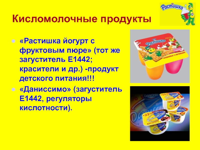 «Растишка йогурт с фруктовым пюре» (тот же загуститель Е1442;