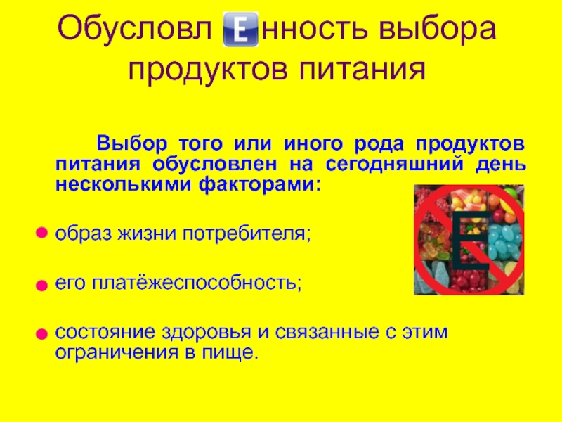 или иного рода продуктов питания обусловлен на сегодняшний день несколькими факторами: