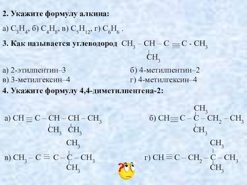 в) 3-метилгексин–4 г) 4-метилгексин–4