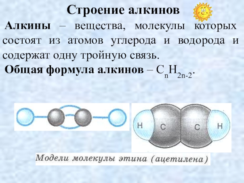 Алкины – вещества, молекулы которых состоят из атомов углерода и