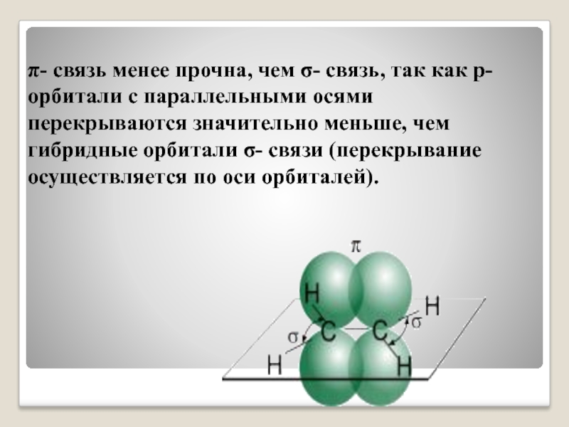 Слайд 15 π- связь менее прочна, чем σ- связь, так как