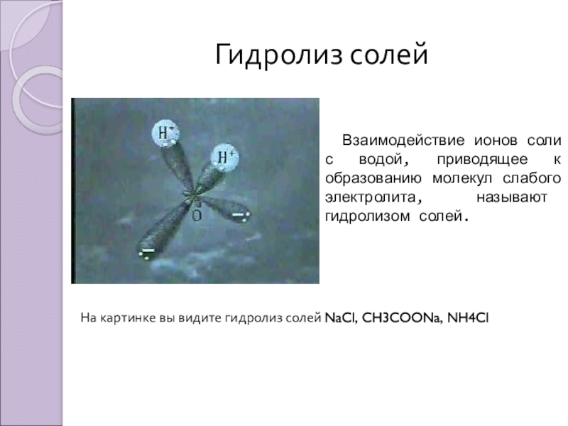 На картинке вы видите гидролиз солей NaCl, CH3COONa, NH4Cl