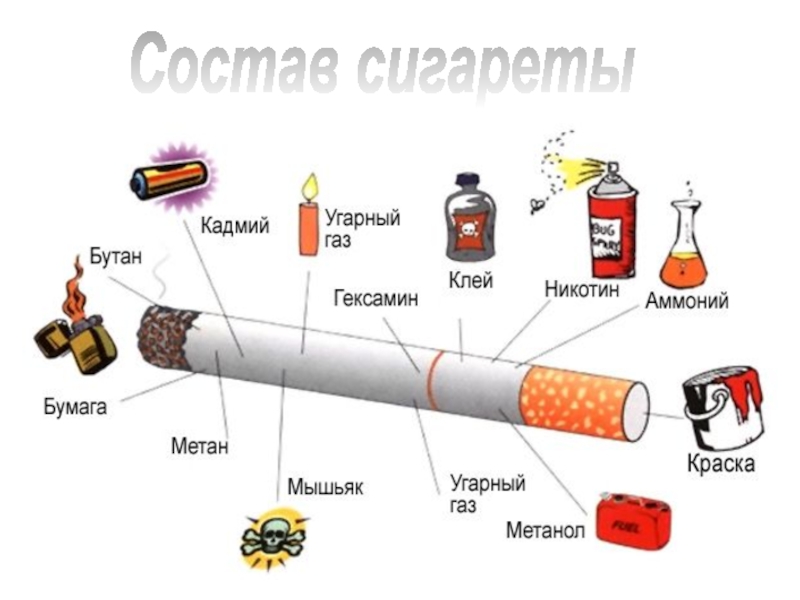 Слайд 9Никотин – алкалоид, содержащийся в листьях и стеблях табака. При курении