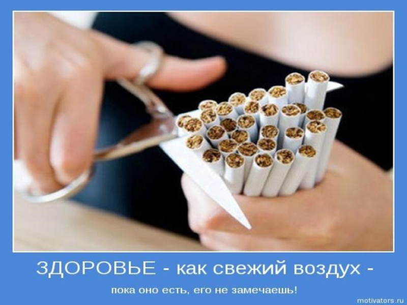 На сегодняшний день в России курят 67% мужчин, 40% женщин и 50% подростков. 500 000 человек ежегодно умирают от курения в России. Каждый 10-й умирающий в мире от курения – россиянин.