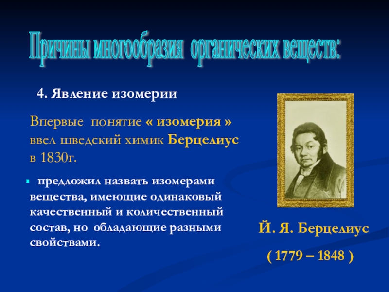 предложил назвать изомерами вещества, имеющие одинаковый качественный и количественный состав, но обладающие разными свойствами.
