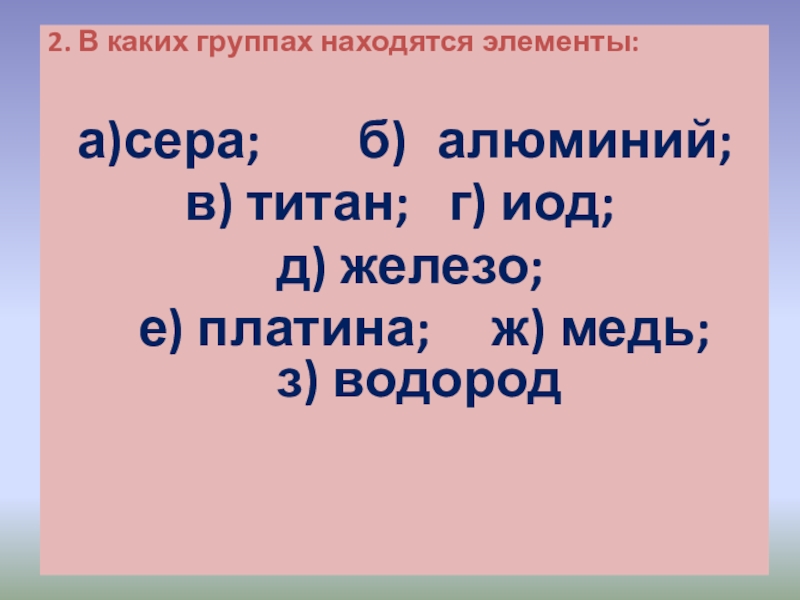 Слайд 32. В каких группах находятся элементы: