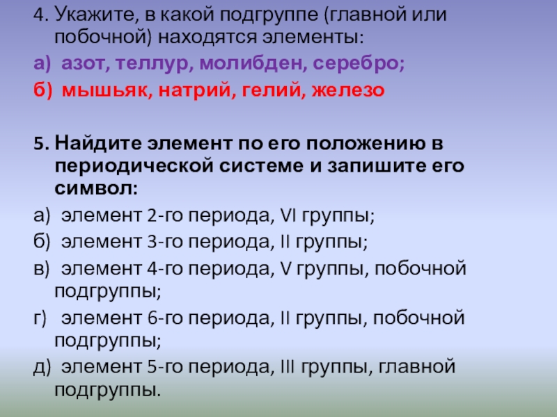 Слайд 66. Укажите, в каком периоде и в какой группе находятся элементы,