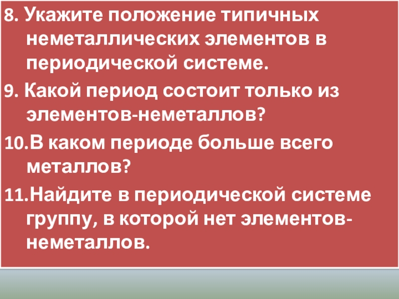 Слайд 78. Укажите положение типичных неметаллических элементов в периодической системе.