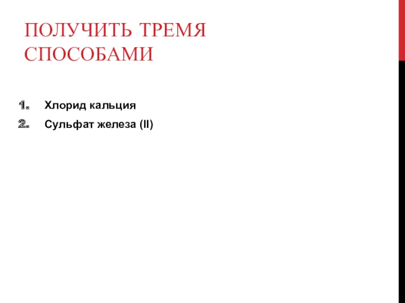 Получить тремя способамиХлорид кальцияСульфат железа (II)