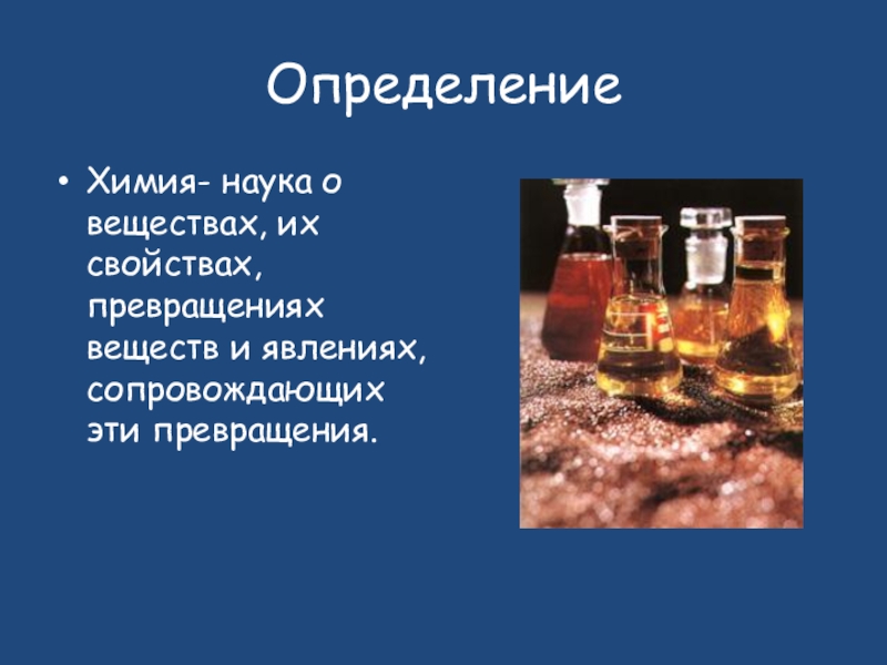 Химия- наука о веществах, их свойствах, превращениях веществ и явлениях, сопровождающих