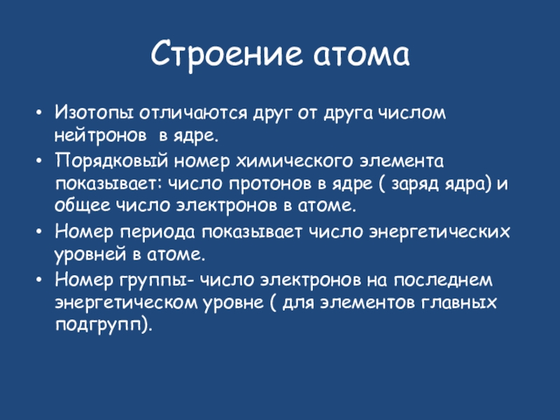 Изотопы отличаются друг от друга числом нейтронов в ядре.