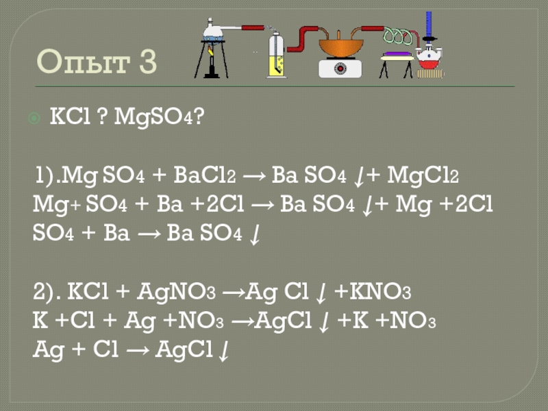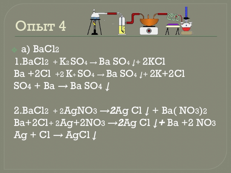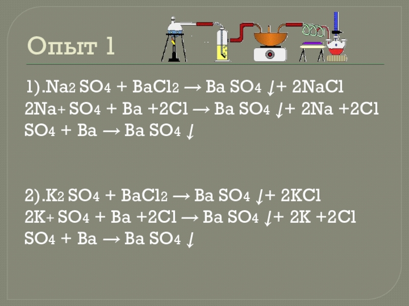 1.BaCl2 + K2 SO4 → Ba SO4 ↓+ 2KCl