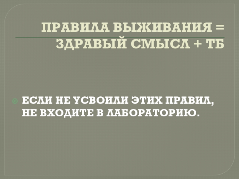 Слайд 3ПРАВИЛА ВЫЖИВАНИЯ = ЗДРАВЫЙ СМЫСЛ + ТБ