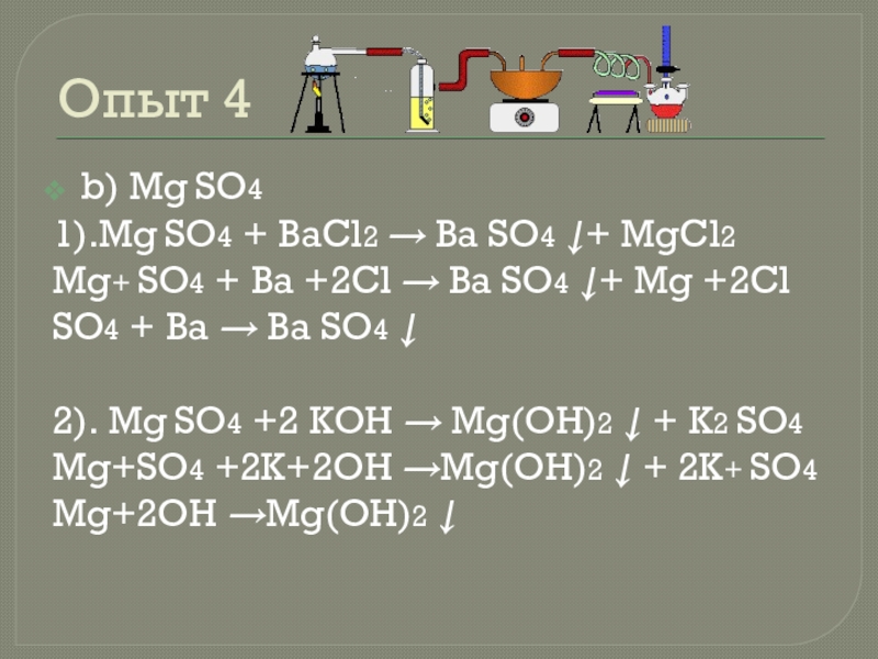 Mg+SO4 +2K+2OH →Mg(OH)2 ↓ + 2K+ SO4