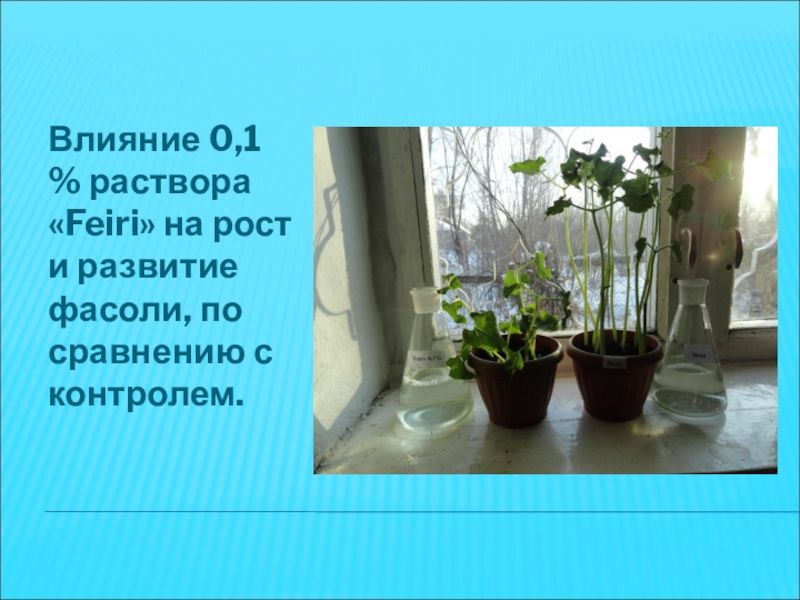 Слайд 30Влияние 0,1 % раствора «Feiri» на рост и развитие фасоли, по