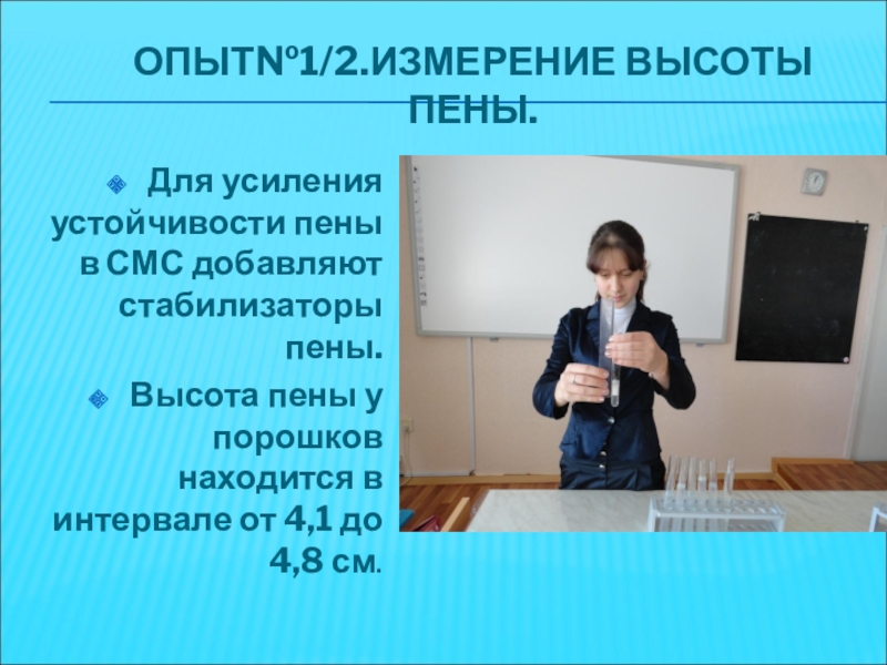 Слайд 21ОПЫТ№1/2.ИЗМЕРЕНИЕ ВЫСОТЫ ПЕНЫ.