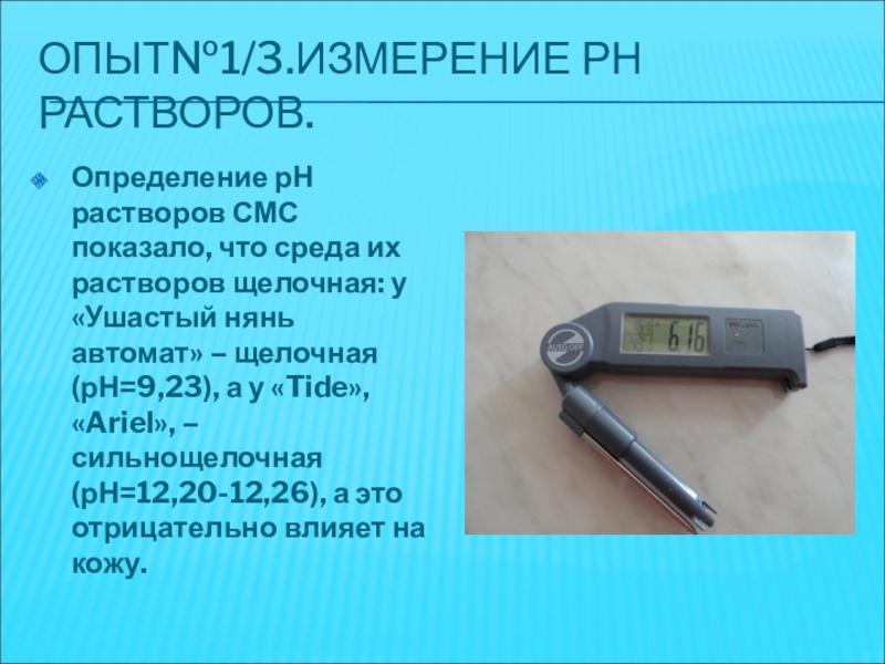Слайд 22ОПЫТ№1/3.ИЗМЕРЕНИЕ РН РАСТВОРОВ.