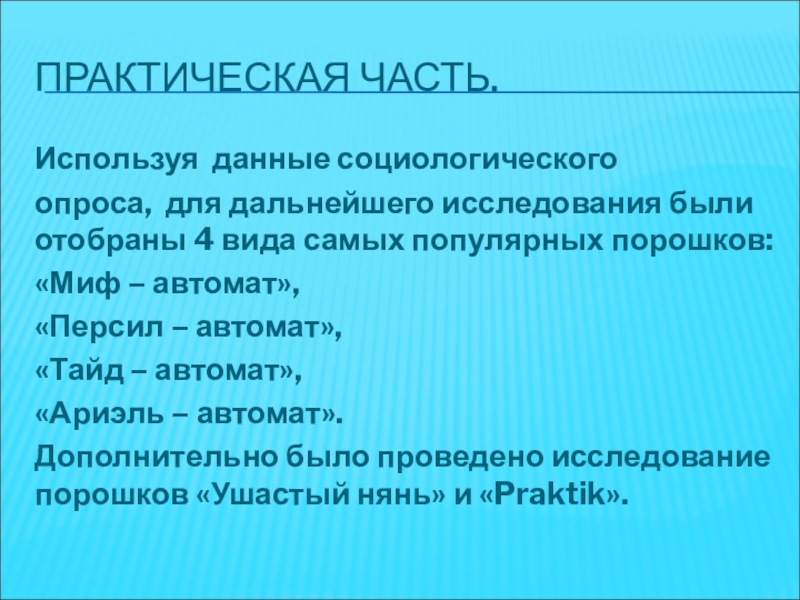 Дополнительно было проведено исследование порошков «Ушастый нянь» и «Praktik».