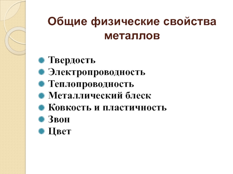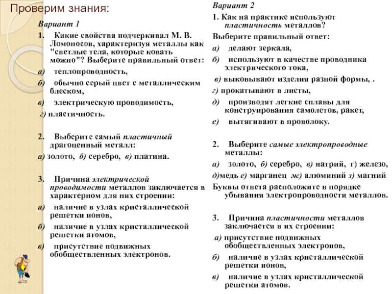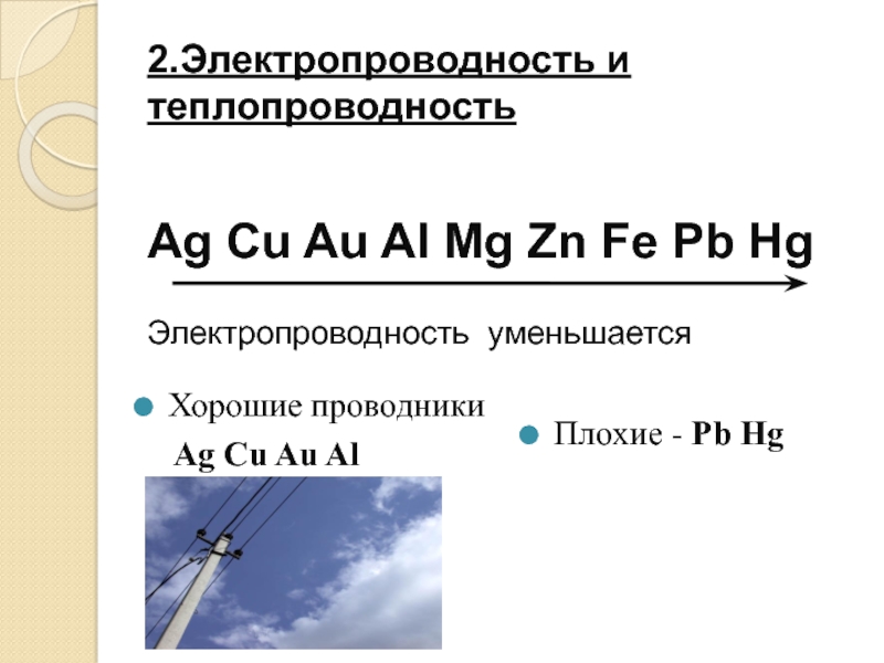Буквы ответа расположите в порядке убывания электропроводности металлов.