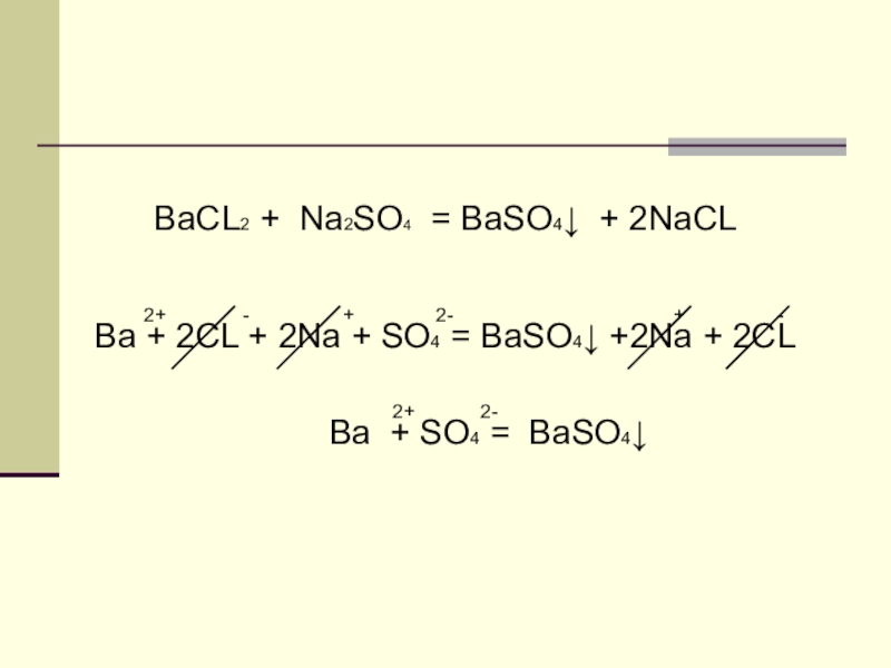 BaCL2 + Na2SO4 = BaSO4↓ + 2NaCL       2+